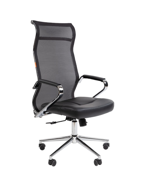 Кресло для руководителя CHAIRMAN 702 Сетчатый акрил черный / Экокожа черный