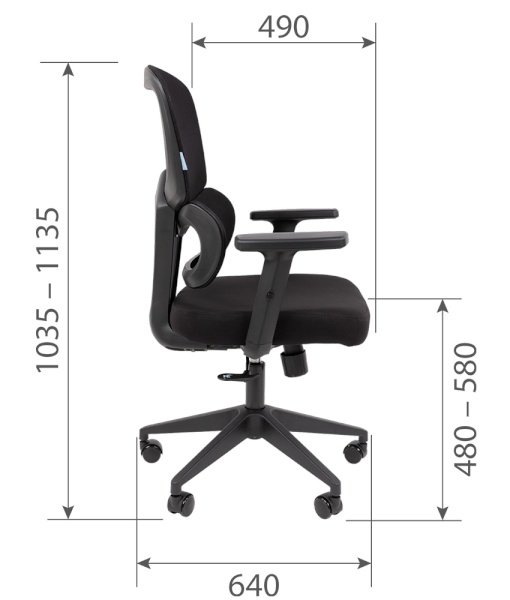 Подлокотники: Пластиковые, регулируемые по высоте, с накладками из мягкого пластика.